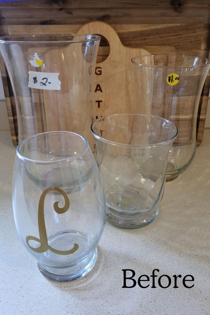 - Jars or glass vases: Thrift stores are the best place to find these. You can use pickle jars, candle jars, drinking glasses, or any glass container that’s tall enough to place over your display item.