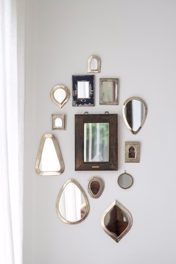 Vintage mirrors do double duty: they add visual interest and help bounce light around a room. Even small mirrors can make a big impact when grouped or placed thoughtfully.