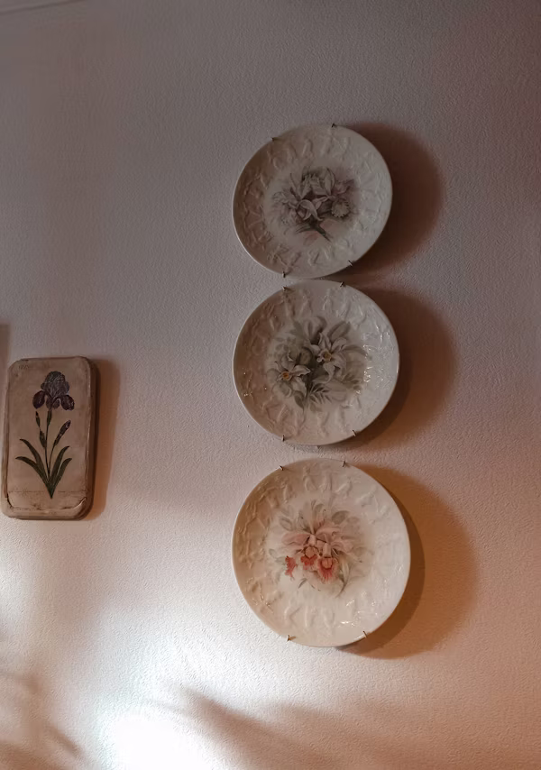 Decorative plates are a classic vintage wall decor option and are easy to find while thrifting. They add interest without overwhelming a space and work especially well in dining rooms, kitchens, and hallways.